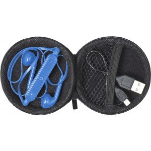 Bluetooth fülhallgató tartóval, kék