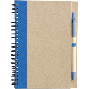Újrahasznosított spirálfüzet tollal, 60 lapos, kék/natúr