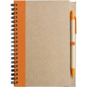 Újrahasznosított spirálfüzet tollal, 60 lapos, narancs/natúr