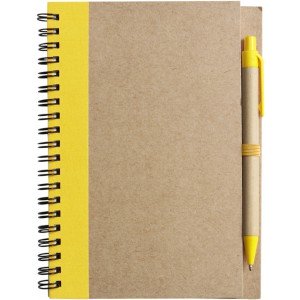 Újrahasznosított spirálfüzet tollal, 60 lapos, sárga