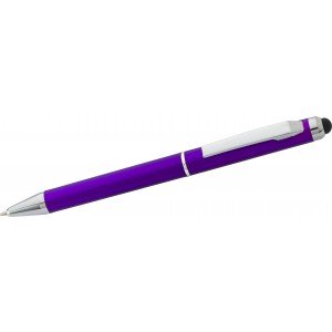Műanyag golyóstoll érintővel, kék tollbetéttel, lila
