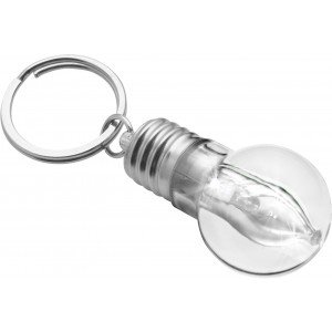 Villanykörte formájú világítós kulcstartó, ezüst/átlátszó