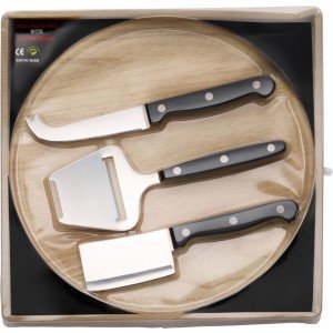 4 részes bambusz sajtkészlet, egy sajtlapáttal (13,3 x 4,7 cm), 2 sajtkéssel (13,5 x 2 cm és 15,3 x 2,5 cm) és egy sajtvillával (14 x 3,5 cm). Az ergonomikus fogantyú kialakítása, a jó méret és a kerek fogantyú megkönnyíti a fogást. Az összes szerszám fogantyúi 7 cm hosszúak, átmérője 1,9 cm. Különböző kemény és lágy sajtok feltekerésére, vágására, szeletelésére, vékony lapok reszelésére és kenésére tervezték. Könnyűek és helytakarékosak, könnyen tárolhatók a konyhaszekrényben, tökéletesek tálcákhoz vagy étkezőasztalokhoz. A felhasznált bambusz forrása és előállítása a fenntartható szabványok szerint történik.