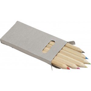 12 színesceruza fa hengeres ceruza alakú dobozban.