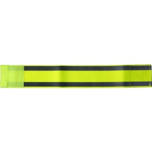 Fényvisszaverő pánt két csíkkal. A fényvisszaverő csíkok 1 cm szélesek. A pánt hossza 32.5 cm, tépőzárral rögzíthető. Promóciós célú felhasználásra gyártott termék.