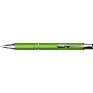 Golyóstoll gumis felülettel, krómozott kiegészítőkkel, kék tollbetéttel. Fém.