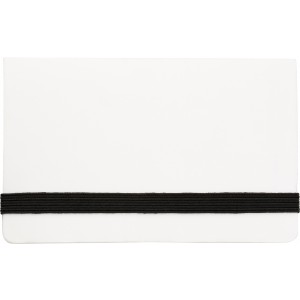 Jegyzettömbkészlet. A doboz fedelében névjegyek számára kialakított rész. Tartalma: 150 db öntapadó jegyzetlap, 160 db fehér jegyzetlap és golyóstoll kék tollbetéttel.
