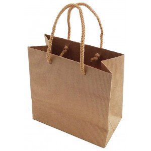 Zsinórfüles papírtáska. Talpszélesség: 8 cm. 120 g-os, bordás kraft anyag.