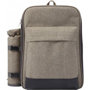 Piknikhátizsák nagy hűtőrésszel 4 fő részére, műanyag étkészlet és evőeszközök, extra tartó a palack számára, valamint só- és borstartó. 600D poliészter.