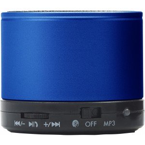 Vezeték nélküli hangszóró hangerő szabályozóval, előre- és visszaléptető gombbal, valamint módválasztó gombbal: MP3, vezeték nélküli mód és kikapcsolás. A töltőkábelt tartalmazza. Színezett fém anyag.